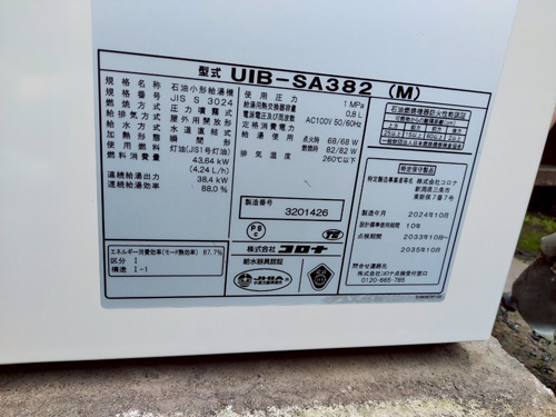 施工事例:多賀城市市川金堀 コロナ石油小形給湯機UIB-SA382(M) 給湯器交換工事